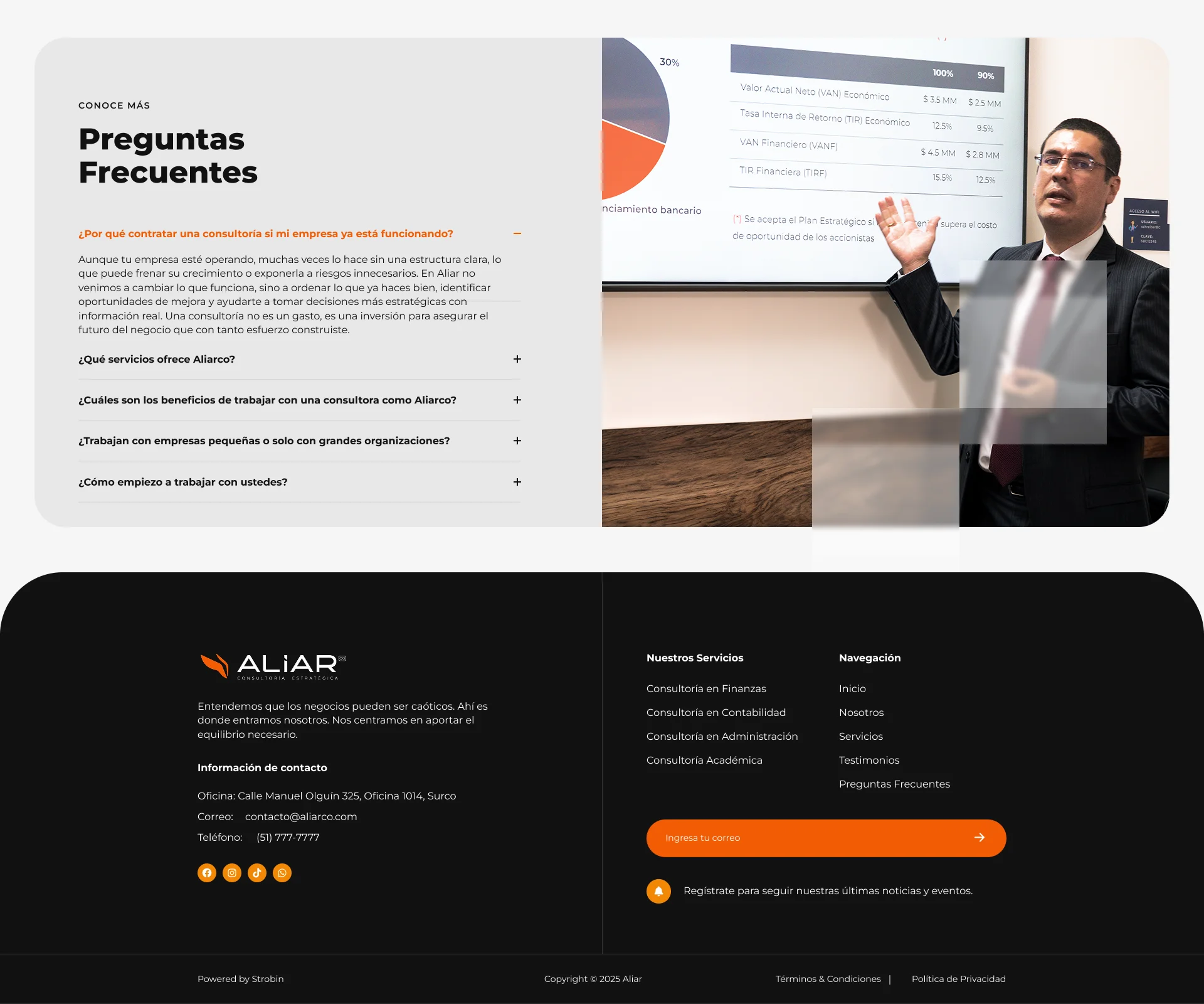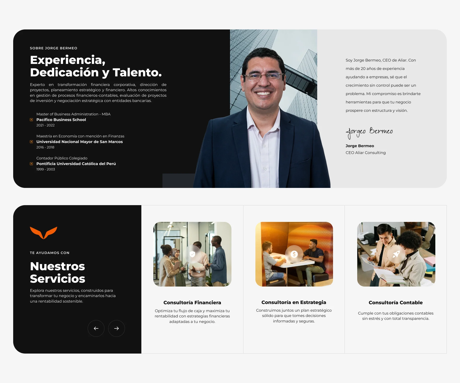 Aliar es una consultora peruana especializada en profesionalizar empresas familiares y organizaciones en crecimiento. Su enfoque combina herramientas de gestión con una lectura humana de los equipos y contextos. Trabajan principalmente con líderes que enfrentan el reto de ordenar su empresa sin perder su esencia.